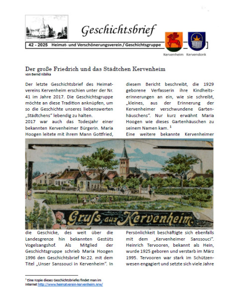 Geschichtsbrief Nr. 42 - 2025 - Der große Friedrich und das Städchen Kervenheim